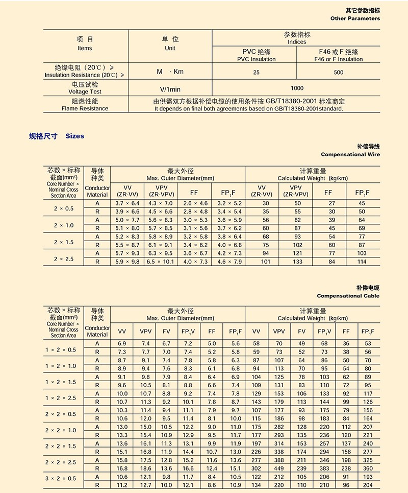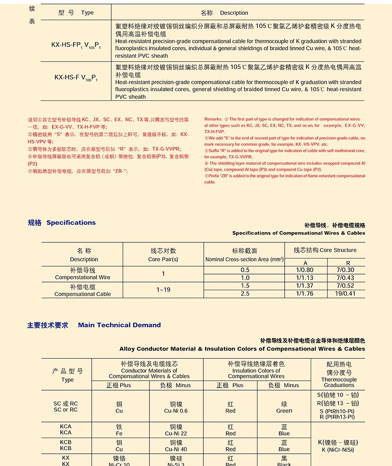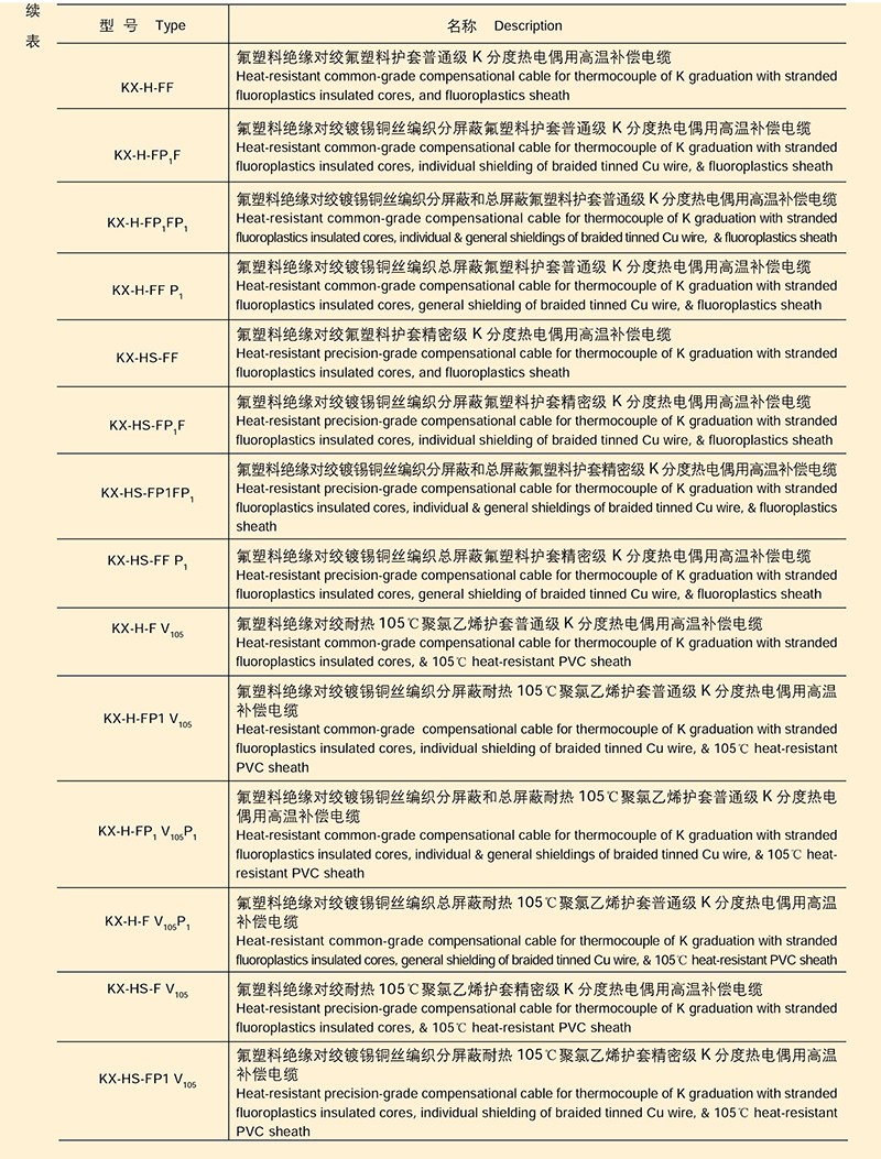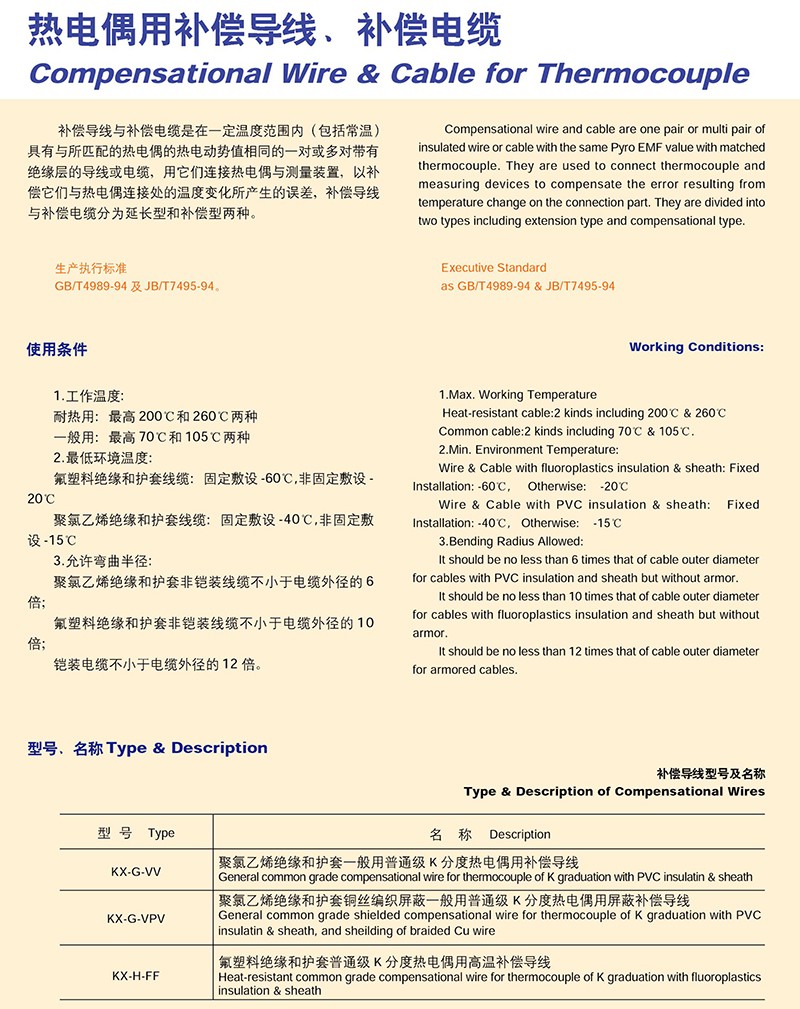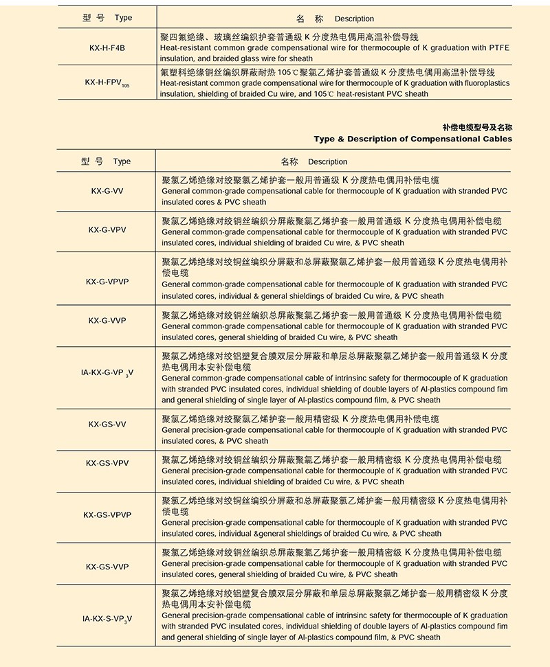 熱電偶用補償導線、補償電纜